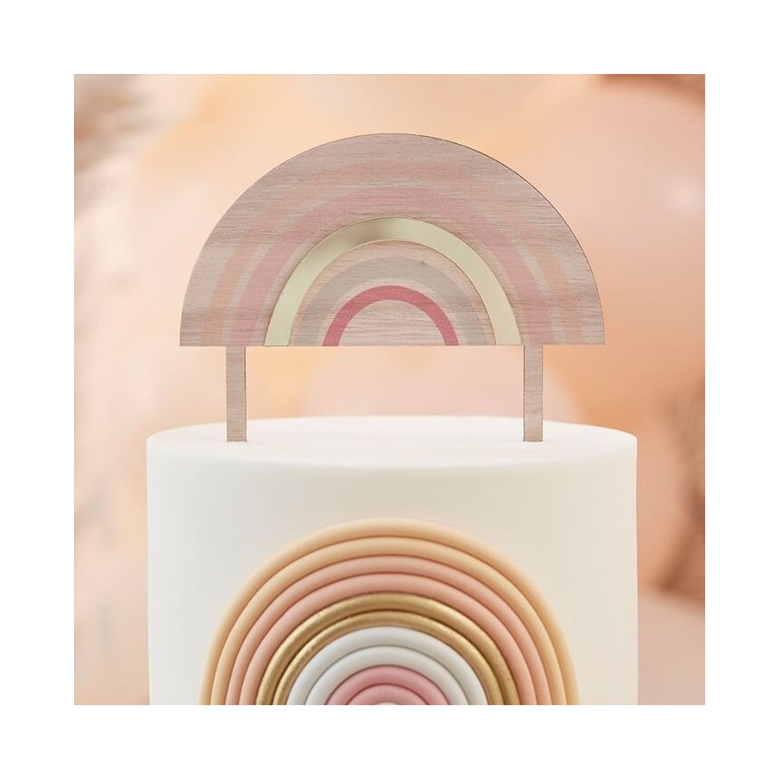 Dieser schöne regenbogenförmige Cake Topper (Kuchendekoration) aus Holz und mit Acryldetails verleiht Ihrem Kuchen eine trendige und originelle Note. Er wird Ihren Kuchen verschönern und zart erleuchten. Außerdem verleiht er Ihrem Fest eine schicke, moderne Note!