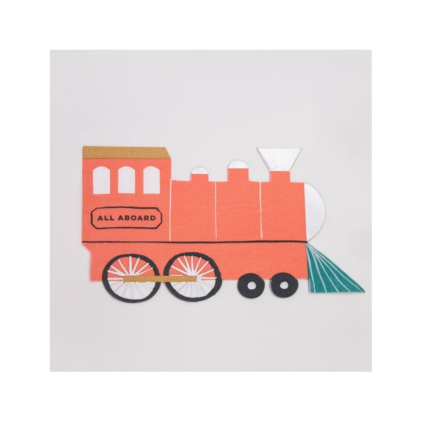 Tschu tschu ! Diese tollen Servietten in Form einer Lokomotive sind perfekt für alle Kinder, die von Eisenbahnen begeistert sind. Sie sind mit metallischen silbernen Details verschönert. Alle einsteigen bitte!