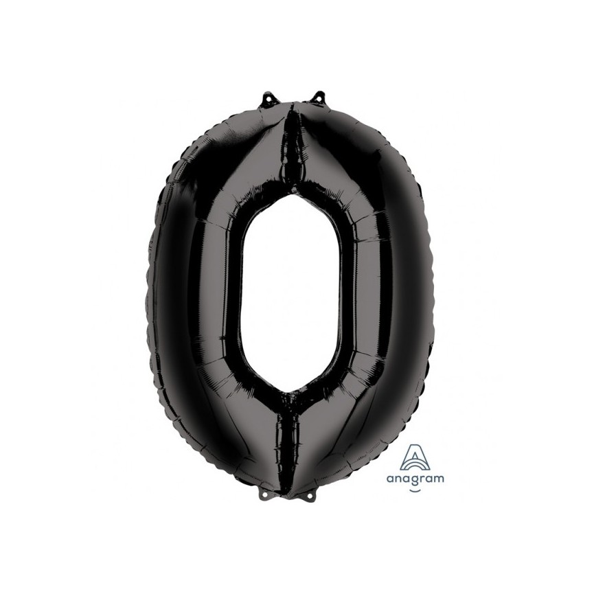 Black "Mid Size"  metallic Mylar balloon that will decorate and indicate with style the number 0!