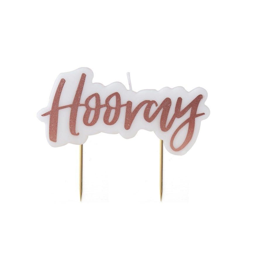 Hip Hip 'Hooray' with our 'Rose Gold Hooray Candle'. It will look stunning on your beautiful cake! A perfect touch to your special day! And don't forget to make a wish when you blow it out!