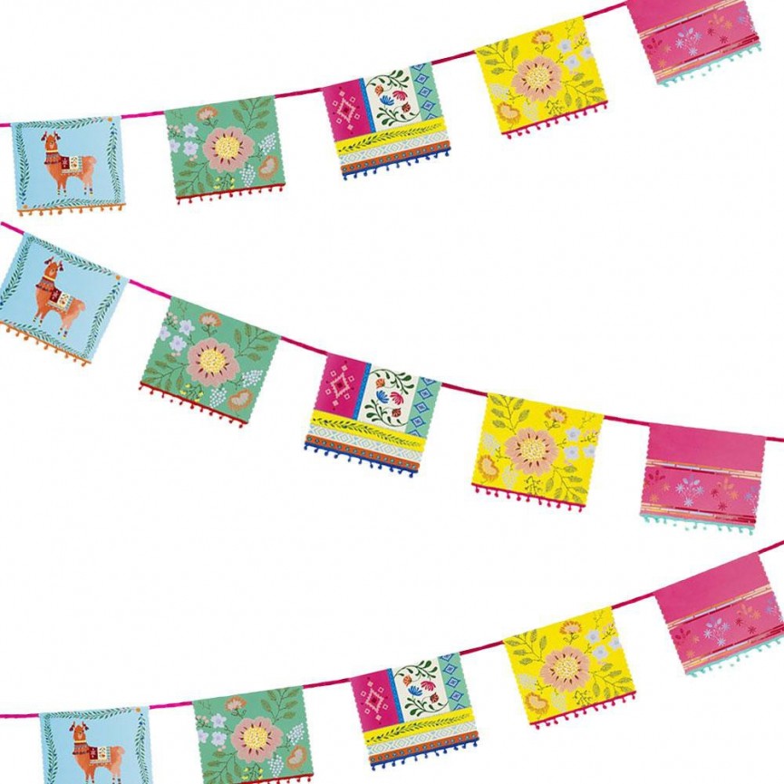 This bunting with vibrant hues and designs is ideal for Bohemian vibes! Decorate your summery party with this bunting with llama and floral prints. It will brighten up your party with summery feelings! Get ready to fiesta!