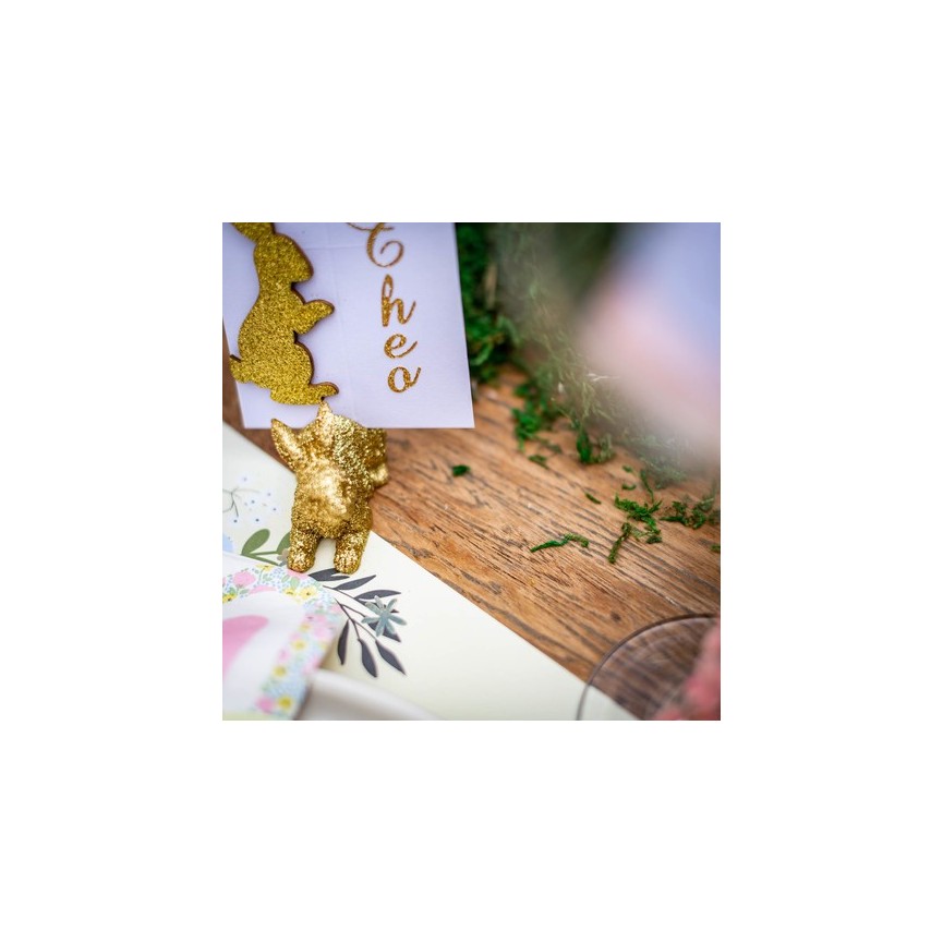 Dress your table this Easter with these adorable gold glitter bunny place card holders. A great way to ensure your guests are seated at the perfect place around your Easter table while setting a pretty table with these cute place cardholders.