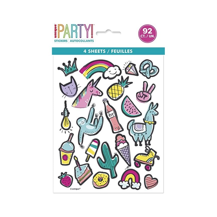 You can make everything look more fun with these Party Sticker Sheets. Hand them out as game prizes, or add them to party bags for kids to take home after the celebration is over. Kids will love decorating their school notebooks and folders with these cute stickers, or use them to add a fun touch to your invitations and thank you notes.