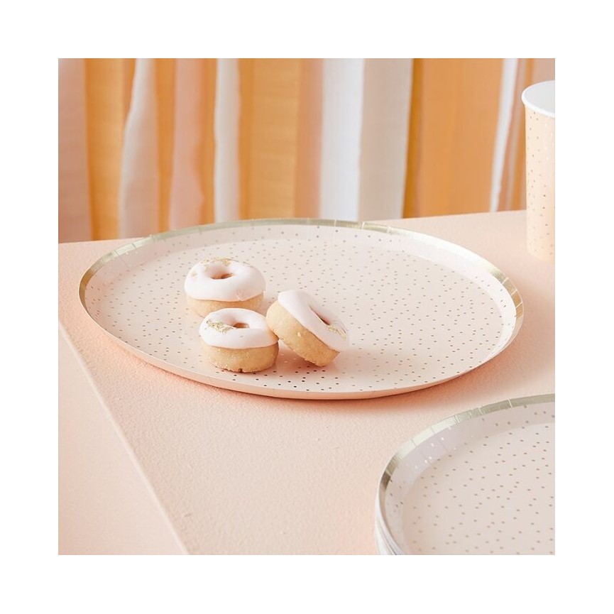 Ces jolies assiettes couleur pêche maculées de délicates taches dorées sont hyper tendance. Elles sublimeront et illumineront votre table en délicatesse tout en ajoutant une touche chic et moderne à votre fête!