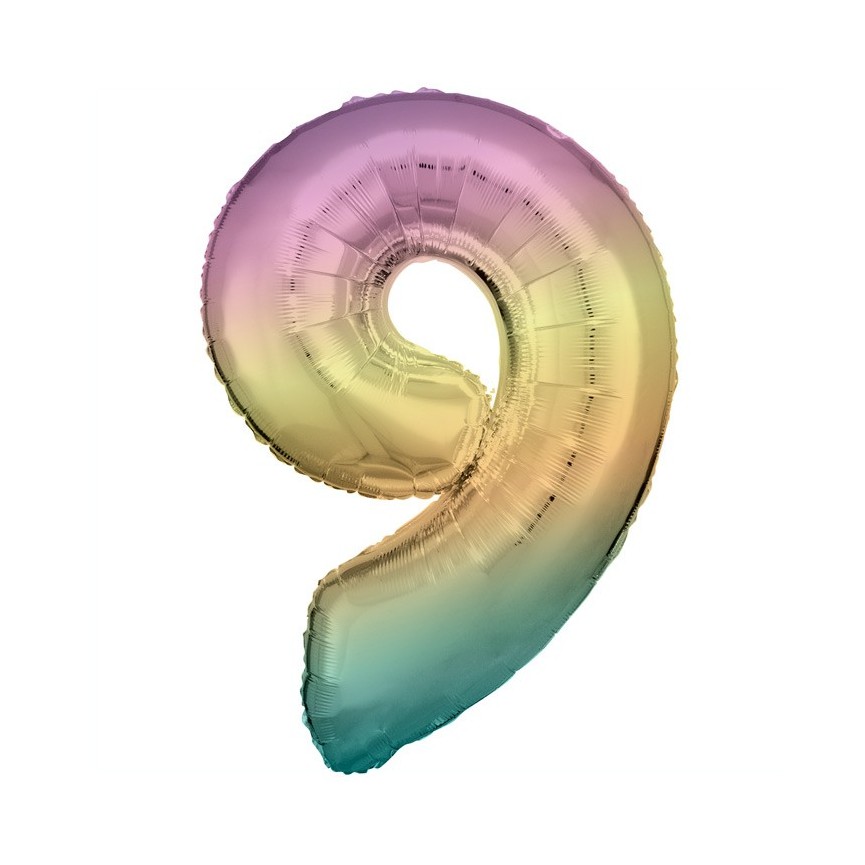Ballon Aluminium Arc-en-Ciel Pastel Chiffre 9