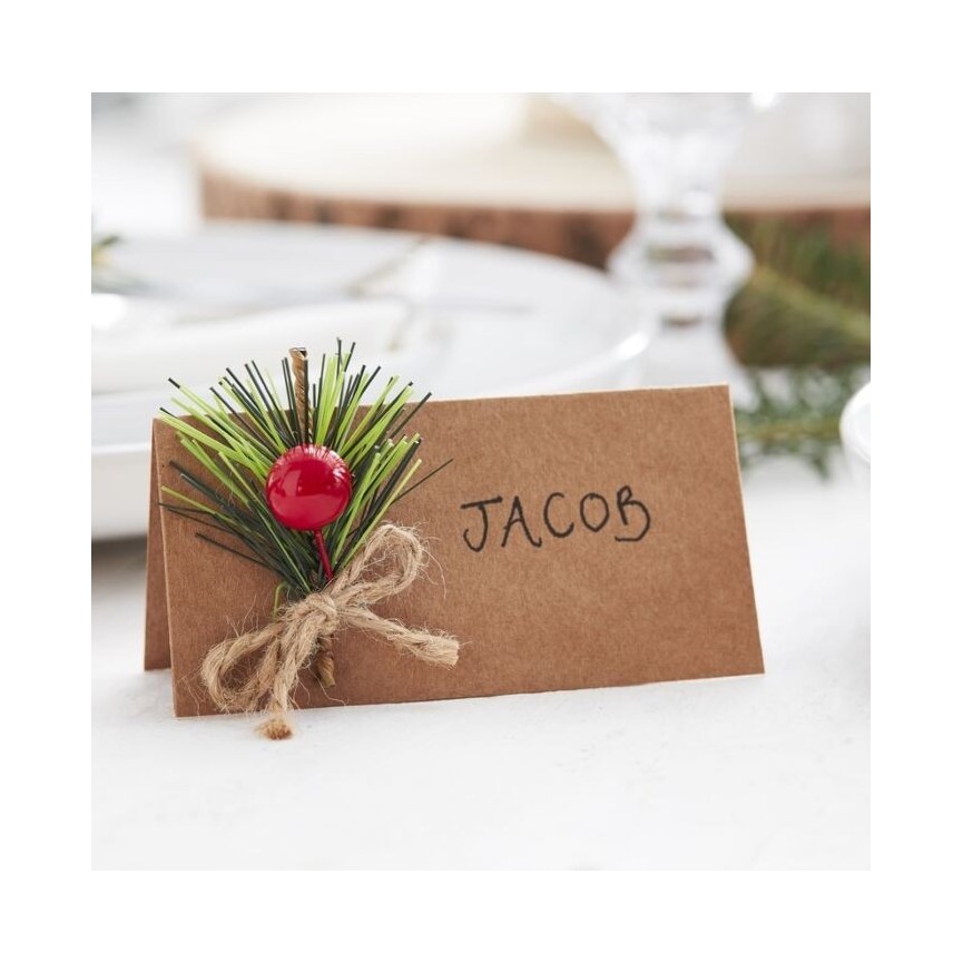 Dressez une table de Noël stylée et rustique avec ces cartes de placements en kraft avec feuillage. Un excellent moyen de vous assurer que vos invités sont assis à la place idéale autour de votre table.