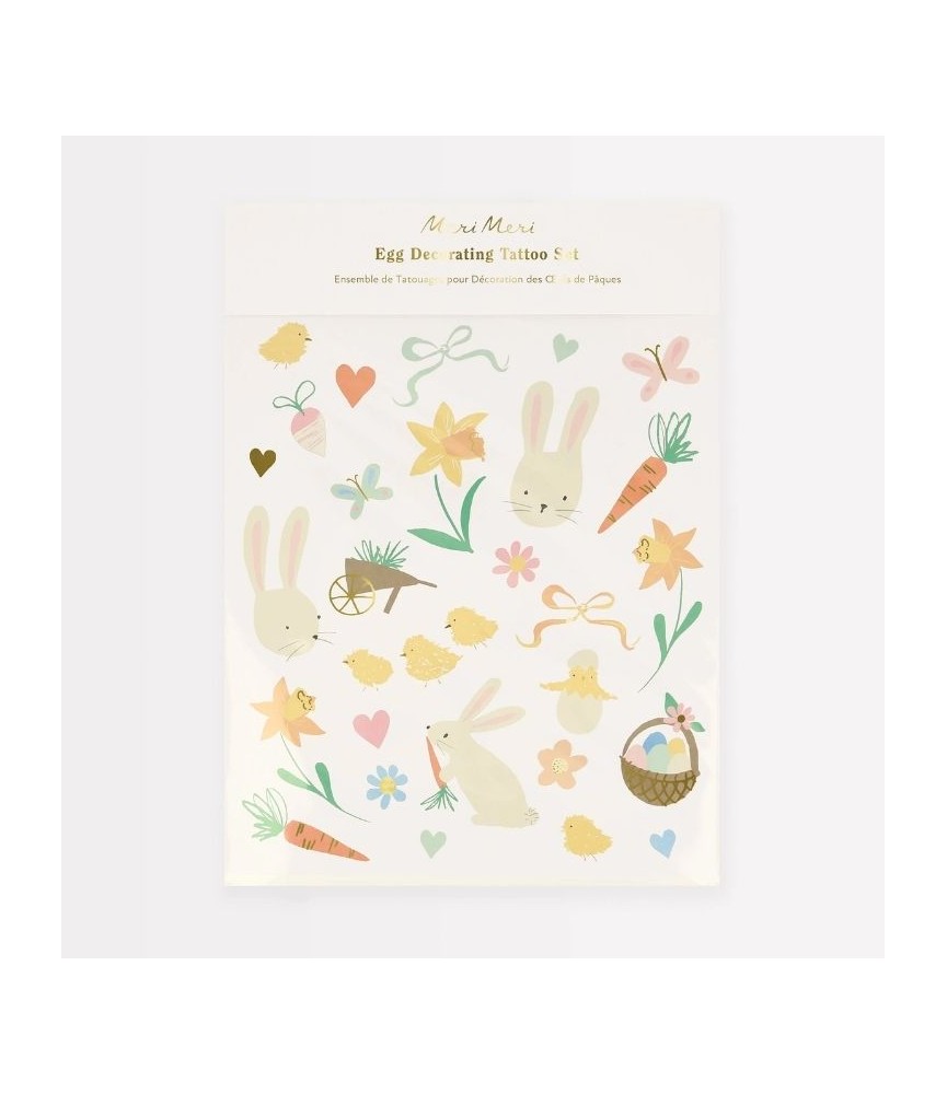 Tatouages temporaires de la marque Meri Meri cools et design pour petits et grands! Se collent facilement en 30 secondes, durent longtemps et s'enlèvent avec du savon! Pour jouer, se déguiser et faire la fête, on adore ces tatouages éphémères ludiques et colorés.