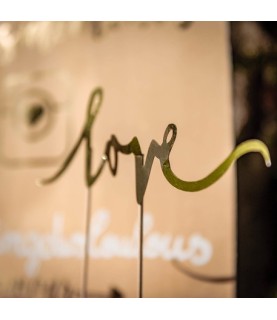 Dieser Cake Topper (Kuchendekoration) mit der goldenen Aufschrift "Love" verziert Ihren Kuchen mit einer eleganten und trendy Note.