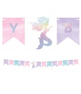 Schimmernde Meerjungfrau Girlande mit der Nachricht „Happy Birthday“. Ideal zum Schmücken Ihrer Wände oder des Partyraumeinganges. Eine geschmackvolle Art, Ihre schimmernden Meerjungfrauen in einem Unterwasserdekor zu empfangen!
