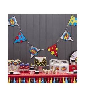 Wimpelgirlande aus unserem Superhelden-Party-Thema. Perfekt für eine Superhelden-Geburtstagsfeier! Und auch schön für die Dekoration des Kinderzimmers nach der Party! Länge 3,50 m.