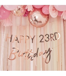 Mit dieser gestaltbaren, metallisch roségoldenen Happy Birthday Girlande können Sie ein Alter, ein Jahr oder eine andere symbolische Ziffer hinzufügen! Sie wird Ihre Geburtstagsdekoration aufleuchten und Sterne in die Augen aller setzen. Für ein Geburtstag "Chic & Glamour" !
