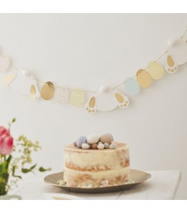 Verschönern Sie Ihr Fest mit dieser entzückenden Girlande, die aus Ostereier und Häschen mit Bommeln und metallisch goldenen Einzelheiten besteht. Diese süße Girlande ist perfekt für Ihr Osterfest und wird eine "egg-stra" besondere Dekoration darstellen!