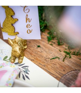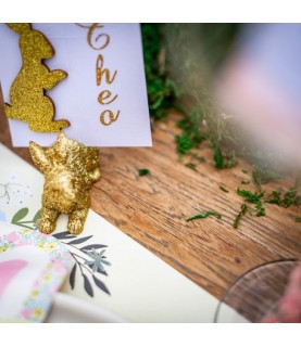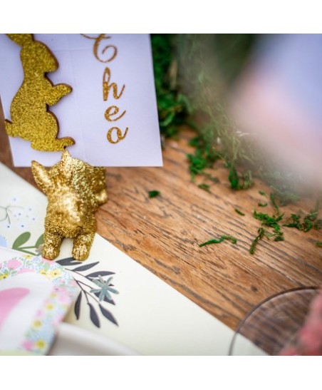 Diese entzückenden Häschen mit Goldglitzer laden sich an Ihren Tisch ein! Verleihen Sie Ihrer Tischdekoration eine besondere Note mit diesen entzückenden Platzhaltern in Form eines Häschens.