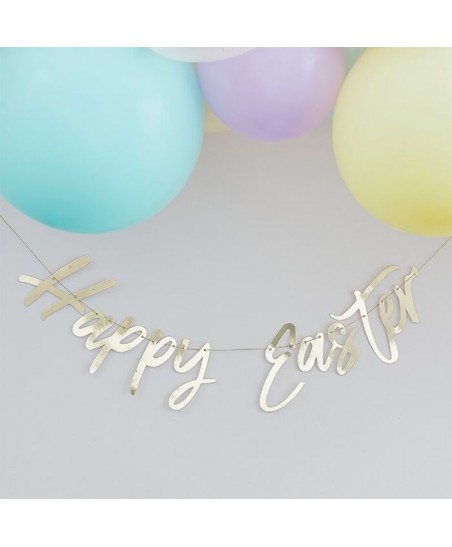 Geben Sie Ihrer Party eine stilvolle Dekoration mit dieser schönen goldenen "Happy Easter" Girlande. Sie verleiht Ihrem Osterfest eine elegante Note.