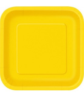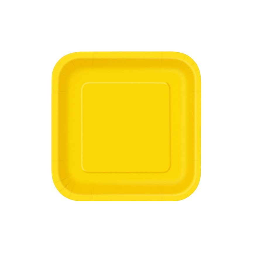 Jedes Paket enthaelt 16 kleine Gelbe Teller aus Pappe.