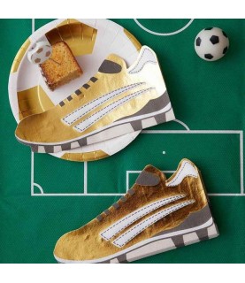 Mit dieser schönen vergoldeten Fußballware besteht keine Gefahr, eine rote Karte zu bekommen! Verteilen Sie Sandwiches und Chips auf diesen lustigen Tellern in Fußballform mit Blattgold-Details. Diese Teller sind perfekt für die Geburtstage aller Fußballmeister und Fußballfans!
