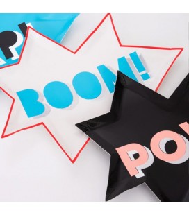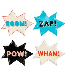 Diese lautmalerischen Superhelden-Teller von Meri Meri werden der Hammer Ihrer Geburtstagsfeier sein. Sie werden Ihre Dekoration perfekt vervollständigen und einen verrückten Effekt erzielen, der dem coolsten Superhelden würdig ist!