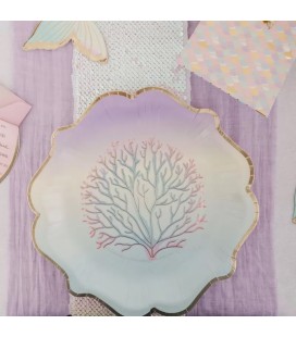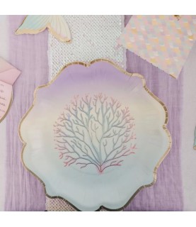 Diese wunderschönen Teller sind mit einem goldenen Rand und Korallen verziert, hinterlegt von einem sanften pastellfarbenen Farbverlauf. Sie verleihen jeder Party ein zauberhaft-festliches Feeling.