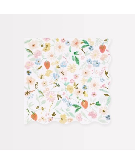 Diese Servietten mit hübschen Aquarellblumen und -erdbeeren sind mit ihren goldenen Details und eleganten Schleifen der Inbegriff von Eleganz. Die Servietten werden Ihre Festdekoration abrunden und Ihrem Fest den Frühling näher bringen. Dank den schönen Pastellfarben passen sie zu jedem Anlass!