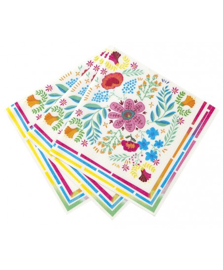Diese reizenden Blümchen Servietten sind perfekt für Boho-Partys, Folk-Partys, mexikanische Abende oder um Ihren Sommerpartys etwas Besonderes zu bieten. Sie werden dank ihrer leuchtenden Farben eine sonnige Note mitbringen und Ihre Gäste in eine fiesta caliente-Atmosphäre versetzen!