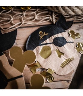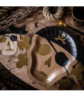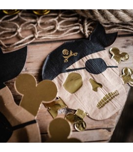 Diese Servietten in Form eines Totenkopfes in glänzendem Gold mit gekreuzten Knochen, ergänzt durch Augenklappen, sind ideal, um unseren kleinen Piraten köstliche Gerichte zu servieren.