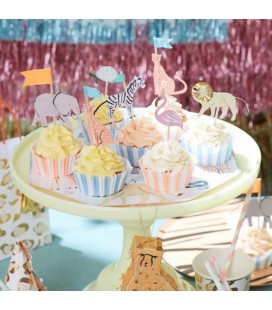 Erleben Sie wilde Abenteuer, aber vergessen Sie die Cupcakes nicht! Kit zum Herstellen für schöne Cupcakes mit dekorativen Partypieksern mit verschiedenen Mustern zum Thema Safari-Tiere, die Ihrer Fete Exotik verleihen. Dieses Kit enthält 24 Backförmchen in 2 Modellen und 24 Aufsätze in 6 Modellen. Verleihen Sie Ihren Cupcakes eine coole, trendige Note!