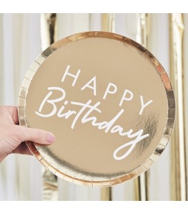 Happy Birthday Pappteller Metallisch Gold