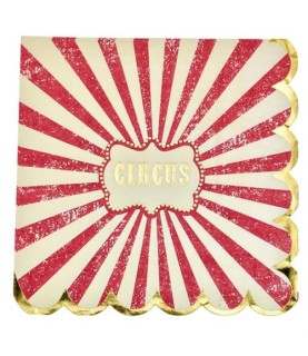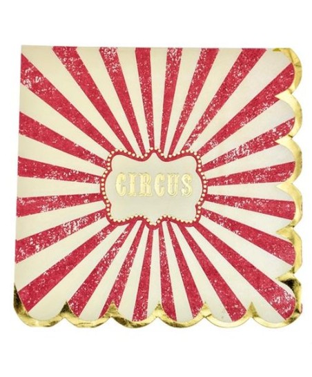 Wunderschöne Servietten, die an die Spuren eines großen Zirkuszeltes erinnern. Sie sind perfekt für eine Vintage-Zirkusstimmung und Kirmes-Atmosphäre. Ein klassisches und zeitloses Thema für alle Kinder, ob jung oder alt, das immer zum Lachen bringt!