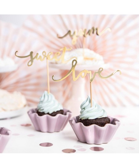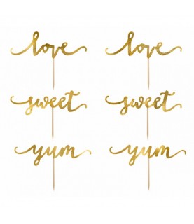 6 Cupcake Topper Love Yum Sweet in Gold