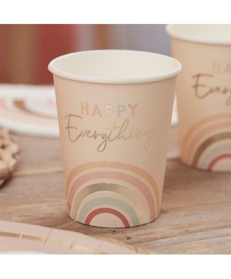 Diese schönen Becher mit einem eleganten Regenbogen und der metallischen Goldbeschriftung "Happy Everything" liegen voll im Trend. Sie werden Ihren Tisch mit Delikatesse verschönern und Ihrer Party einen schicken, modernen Hauch verleihen!