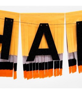 Verbreiten Sie Halloween-Freude mit dieser "Happy Halloween"-Girlande. Sie ist wunderschön aus Seidenpapier mit Fransen gefertigt und wird Ihren Partyraum prachtvoll schmücken.