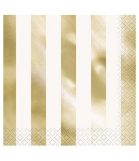 Jede Packung enthält 16 große Servietten mit metallisch goldenen Streifen.