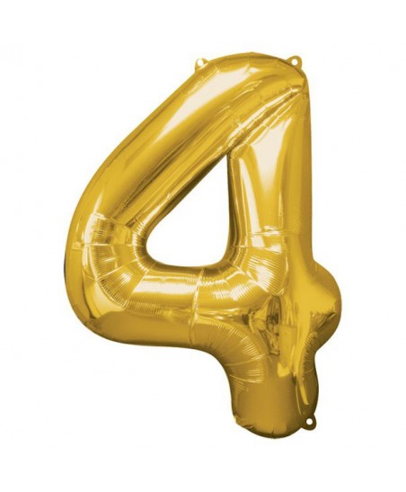 Metallic goldener "Super Shape" Folienballon, der Ihren Saal dekoriert und mit Stil die Nummer 4 anzeigt!