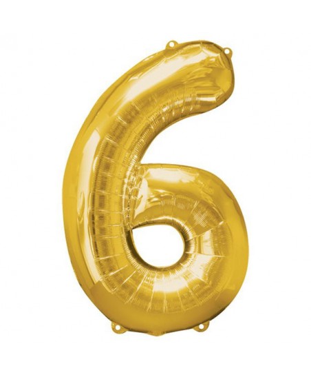 Metallic goldener "Super Shape" Folienballon, der Ihren Saal dekoriert und mit Stil die Nummer 6 anzeigt!
