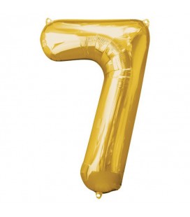 Metallic goldener "Super Shape" Folienballon, der Ihren Saal dekoriert und mit Stil die Nummer 7 anzeigt!