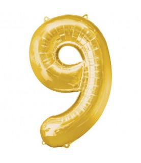 Metallic goldener "Super Shape" Folienballon, der Ihren Saal dekoriert und mit Stil die Nummer 9 anzeigt!
