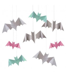 8 Hängende Halloween Fledermäuse mit pastellfarbenen Pailletten