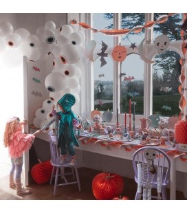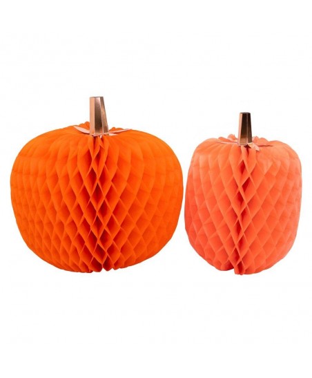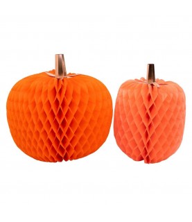 Diese Halloween-Kürbisse aus Wabenpapier werden auf Ihrer Veranda oder in Ihrem Partyraum wunderbar aussehen. Die Packung enthält 2 Kürbisse, eine in Orange und eine in Hell Orange und sie haben glänzende Stiele aus Kupferfolie für einen stilvollen Look!
