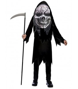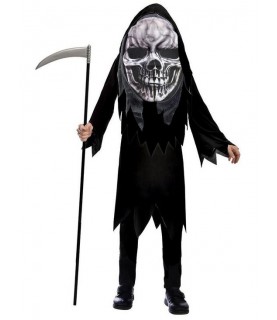 Für Halloween verwandle dich mit diesem Kostüm in ein gruseliges Skelett. Der langärmelige schwarze Overall, der mit einem Skelett bedruckt ist, passt perfekt zu der Schädelmaske und dem Umhang mit Kapuze. All dies schafft einen unheimlichen, schrecklichen Look, ideal für Halloween !