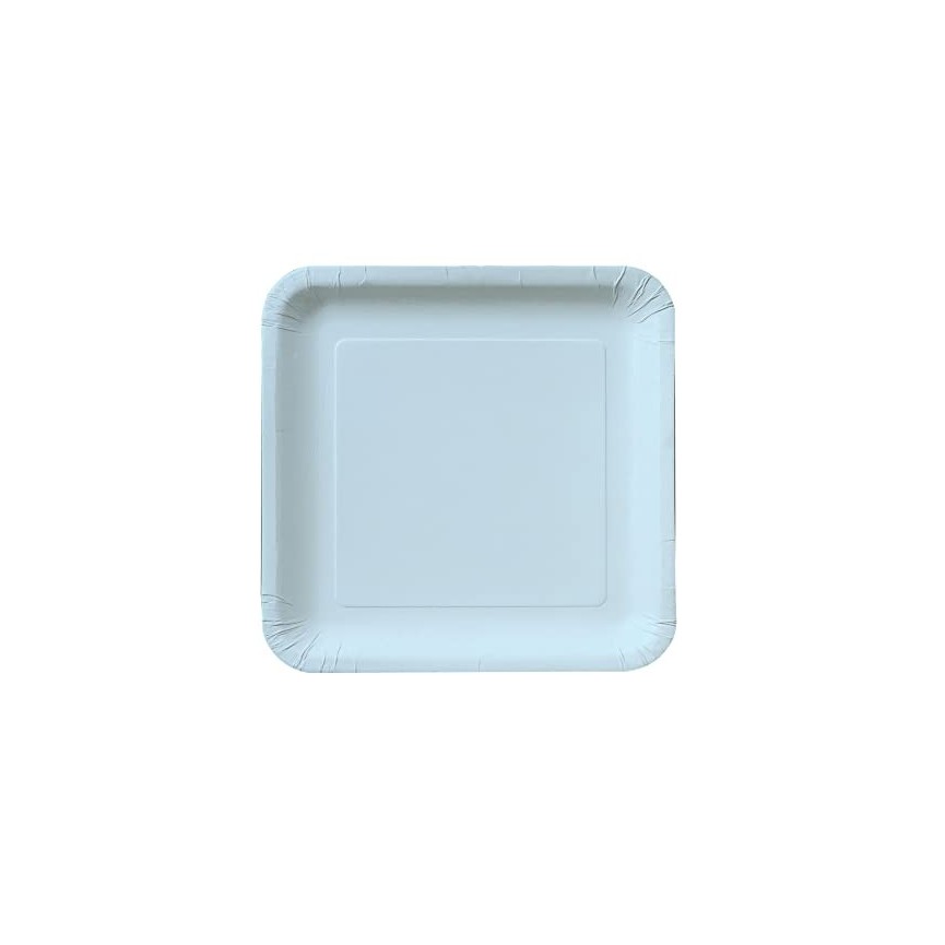 Jedes Paket enthaelt 14 grosse Himmelblaue Teller aus Pappe.