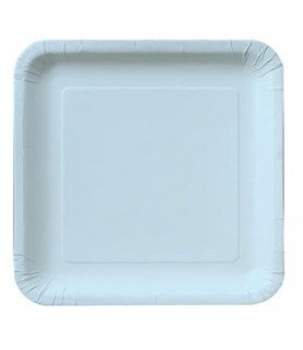 Jedes Paket enthaelt 16 kleine Himmelblaue Teller aus Pappe.