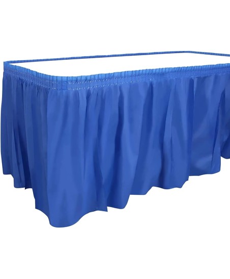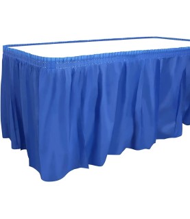 Koenigsblauer Tischrock aus Plastik mit Klebeband auf der Rueckseite.