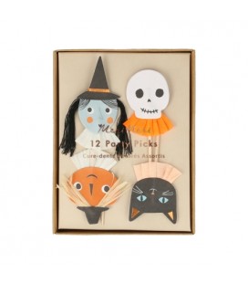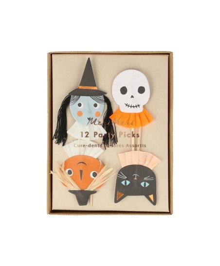 4 verschiedene Figuren für dieses Sortiment von 12 Retro Halloween Party-Piekser. Einfach diese Retro Halloween-Figuren in Ihre Desserts und kleinen Sandwiches stechen, um Ihren Tisch zu dekorieren und einen Hauch von Fantasie hinzuzufügen!