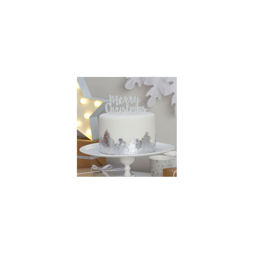 Dieser silberfarbene Cake-Topper veredelt Ihren Weihnachtskuchen und überrascht Ihre Gäste. Gestalten Sie Ihre Weihnachtskuchen und Torten auf origineller und festlicher Weise ! 12 cm x 7.5 cm