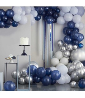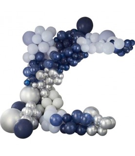 Luftballonbogen in Silber, Marineblau & Hellblau (Luxus Bausatz)