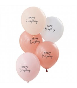 5 Happy Everything Luftballons in Pastellfarben