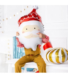 Glänzender Folienluftballon in Form eines Weihnachtsmannes, Farbmischung, Größe ca. 50 x 70 cm. Aufblasen mit Luft oder Helium.