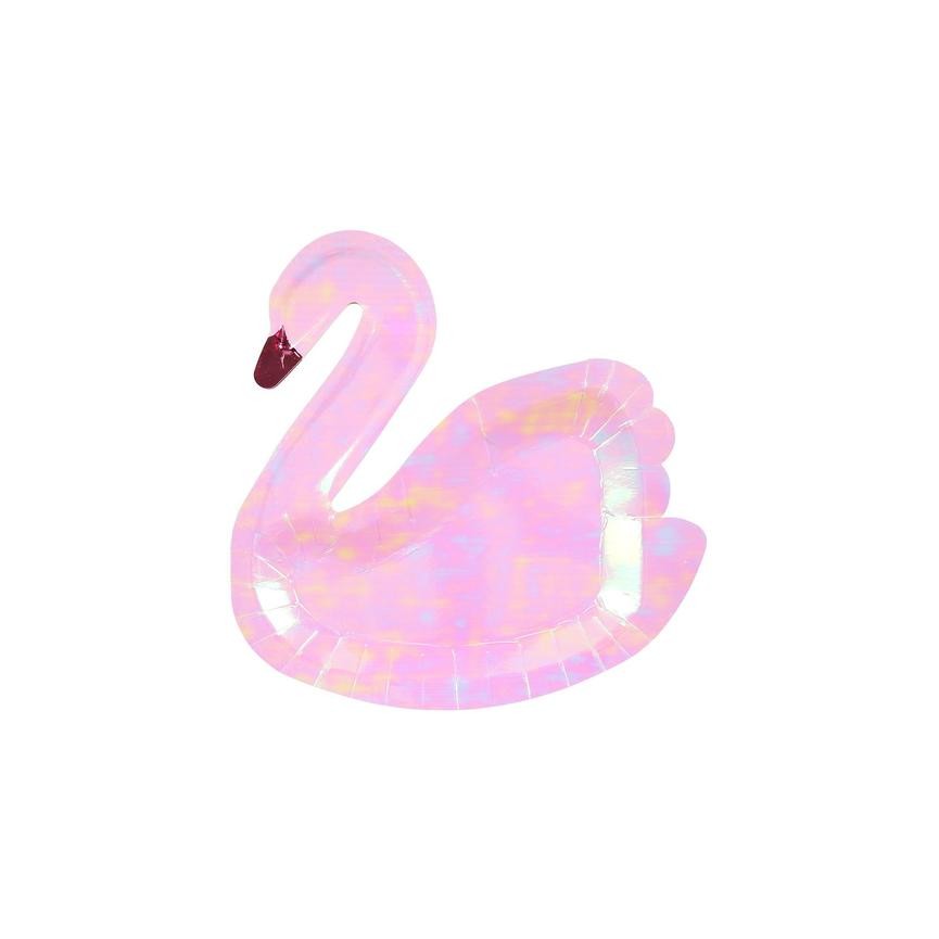 Dieser Teller in der Form von einem rosa Schwan mit irisierender Verarbeitung von Meri Meri ist perfekt für eine schicke, exotische Tropenparty. Er wird Ihren Tisch mit Anmut und Eleganz verschönern!