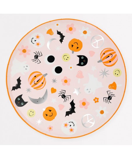 Wir lieben Halloween - und wir wetten, Sie tun das auch! Deshalb haben wir diese Teller mit fantastischen Halloween-inspirierten Symbolen bedruckt, die Ihnen bestimmt ein Lächeln ins Gesicht zaubern! Die Farbkombination aus pink, orange, schwarz, silber und weiss wird der Hingucker auf jeder Party!