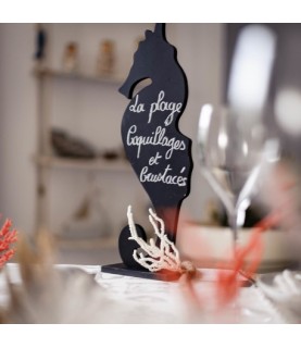 Mit diesem prächtigen Schiefer in Form eines Seepferdchens verleihen Sie Ihrer Tischdekoration eine schicke exotische Note. Ideal zum Auflisten Ihrer Speisekarte mit Meeresfrüchten oder zur Begrüßung Ihrer Gäste ! Eine wunderschöne Tischdekoration zum Thema Meer und Strand.